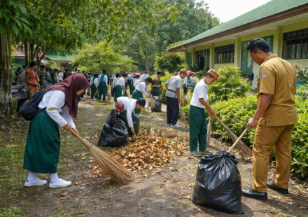 Gotong Royong Bersihkan Lingkungan Sekolah di Kecamatan Kintom